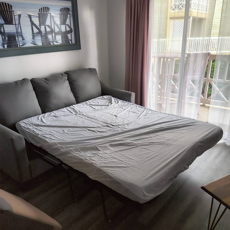 Beautiful 1 bedroom with pool view overlooking the beach. 480 square feet. 1 Queen bed and one bunk bed and a sofa pull out bed. Total of 3 Beds. Sleeps 6. The private balcony with beautiful beach views of the spectacular Gulf of Mexico and Babe's Beach! built-in Refrigerator for your convenience! Hot Tubs and 2 Pools!! We've thought of everything! Come on! BONUS!! ⭐⭐⭐⭐⭐COMPLIMENTARY CRUISE SHIP PARKING FOR UP TO 7 DAYS (If you need more days please let us know) INCLUDING YOUR STAY!